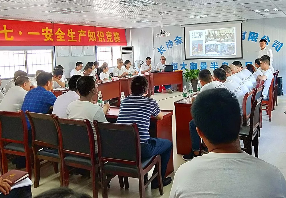 為進一步延伸“安全生產月”活動,全面貫徹黨的十九大精神,積極響應習近平總書記對安全工作的重要指示和省、市關于安全生產的決策部署,在公司掀起安全生產學習熱潮,營造濃厚的安全生產氛圍。在建黨97周年之際,公司安全生產月活動之時,以公司黨員帶領全體員工開展以“生命至上、安全發(fā)展”為主題的安全生產知識競賽在恒大御景半島項目部會議室隆重舉行。