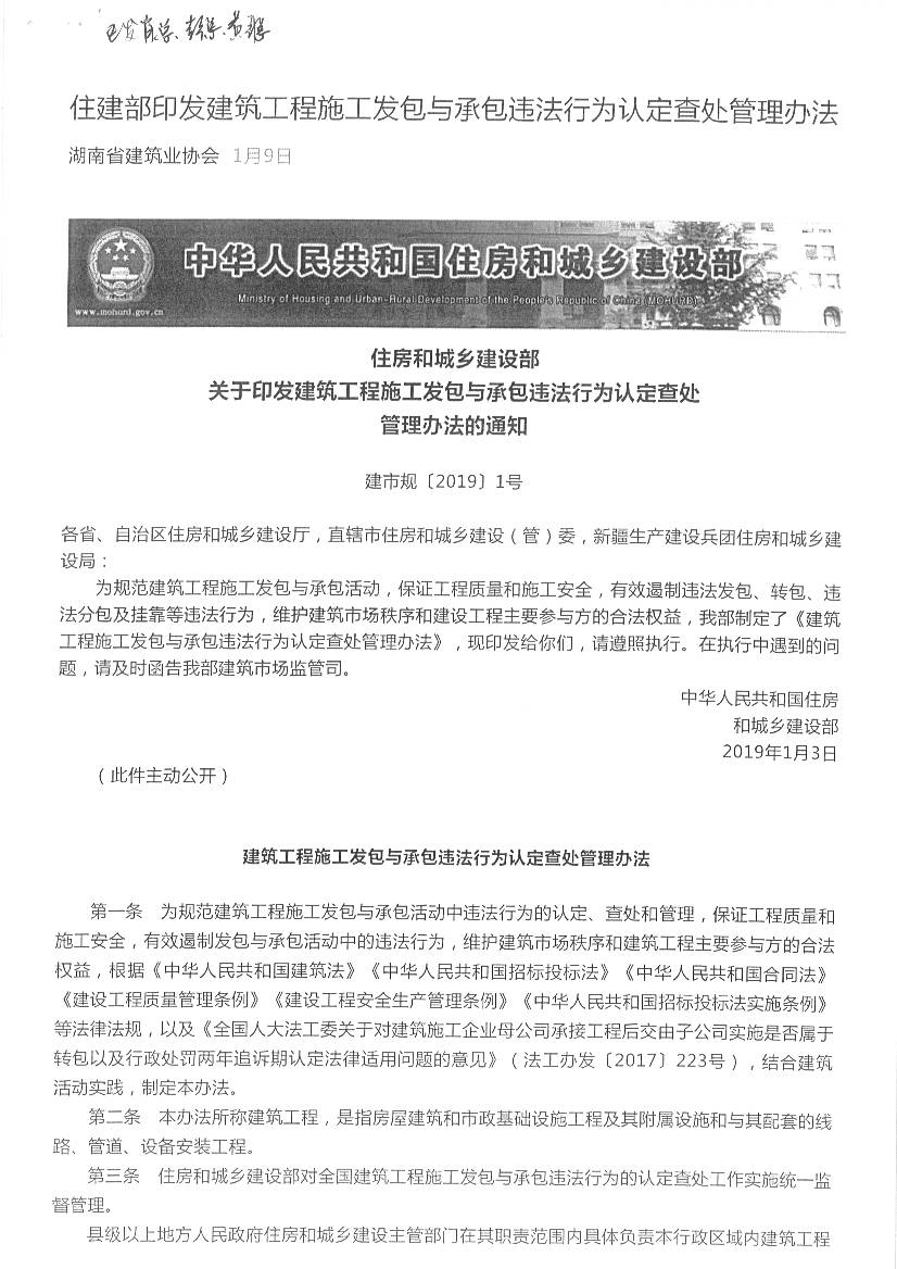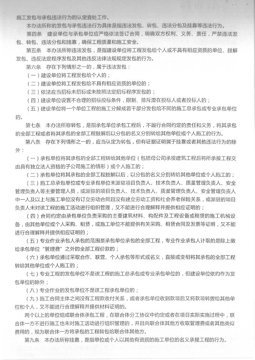建筑工程施工發(fā)包與承包違法行為認定查處管理辦法