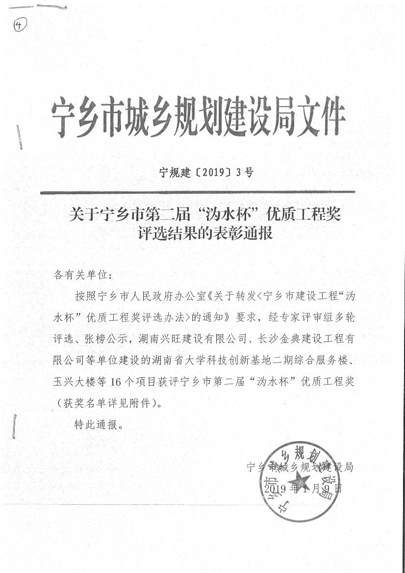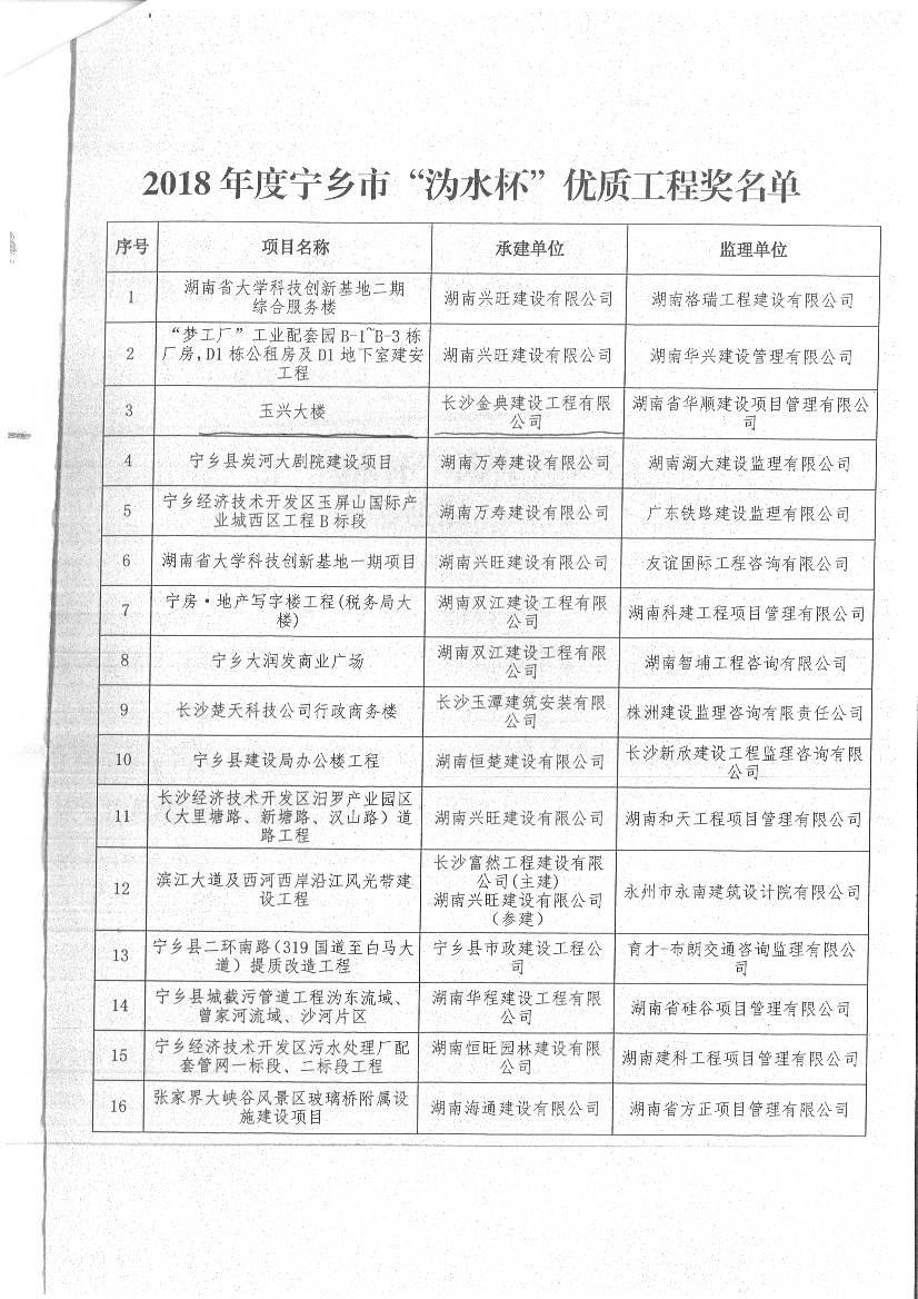 關(guān)于寧鄉(xiāng)市第二屆“溈水杯”優(yōu)質(zhì)工程獎(jiǎng)評(píng)選結(jié)果的表彰通報(bào)