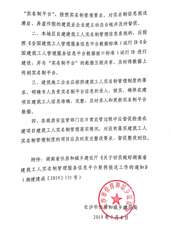 關(guān)于加強(qiáng)湖南省建筑工人實(shí)名制管理服務(wù)信息平臺(tái)數(shù)據(jù)報(bào)送工作的通知